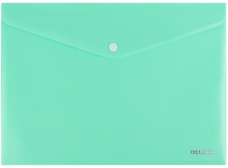 Папка-конверт с кнопкой PROF-PRESS, формат А4, пластик 180 мкм. ЗЕЛЕНАЯ арт.ПК-3026