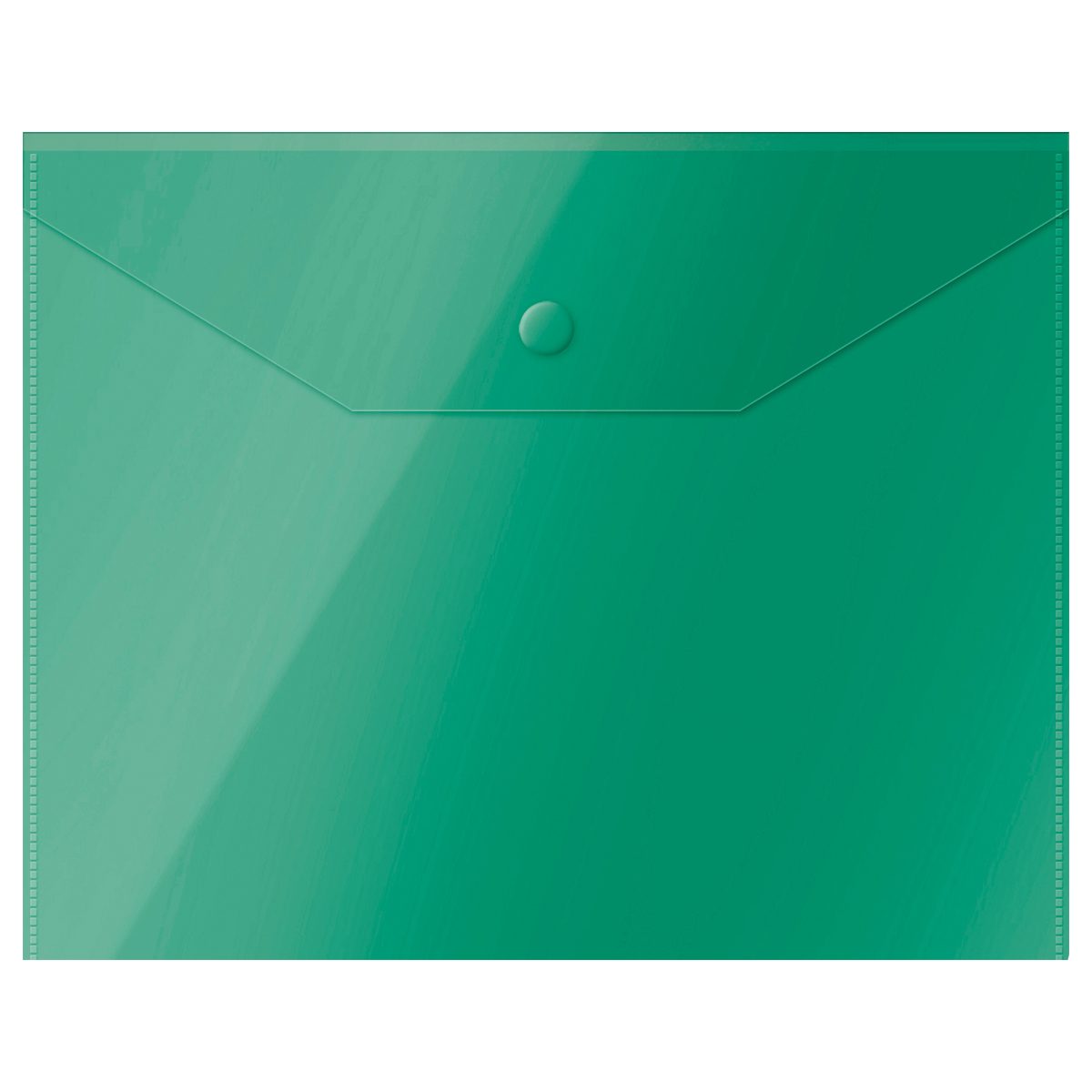 Папка-конверт на кнопке СТАММ А5 (190х240мм), 150мкм, пластик, прозрачная, ЗЕЛЕНАЯ арт.ММ-31904