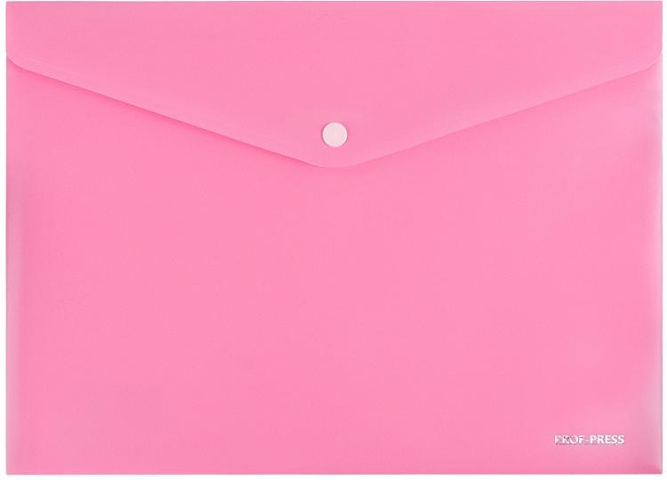 Папка-конверт с кнопкой PROF-PRESS, формат А4, пластик 180 мкм. РОЗОВАЯарт.ПК-3025