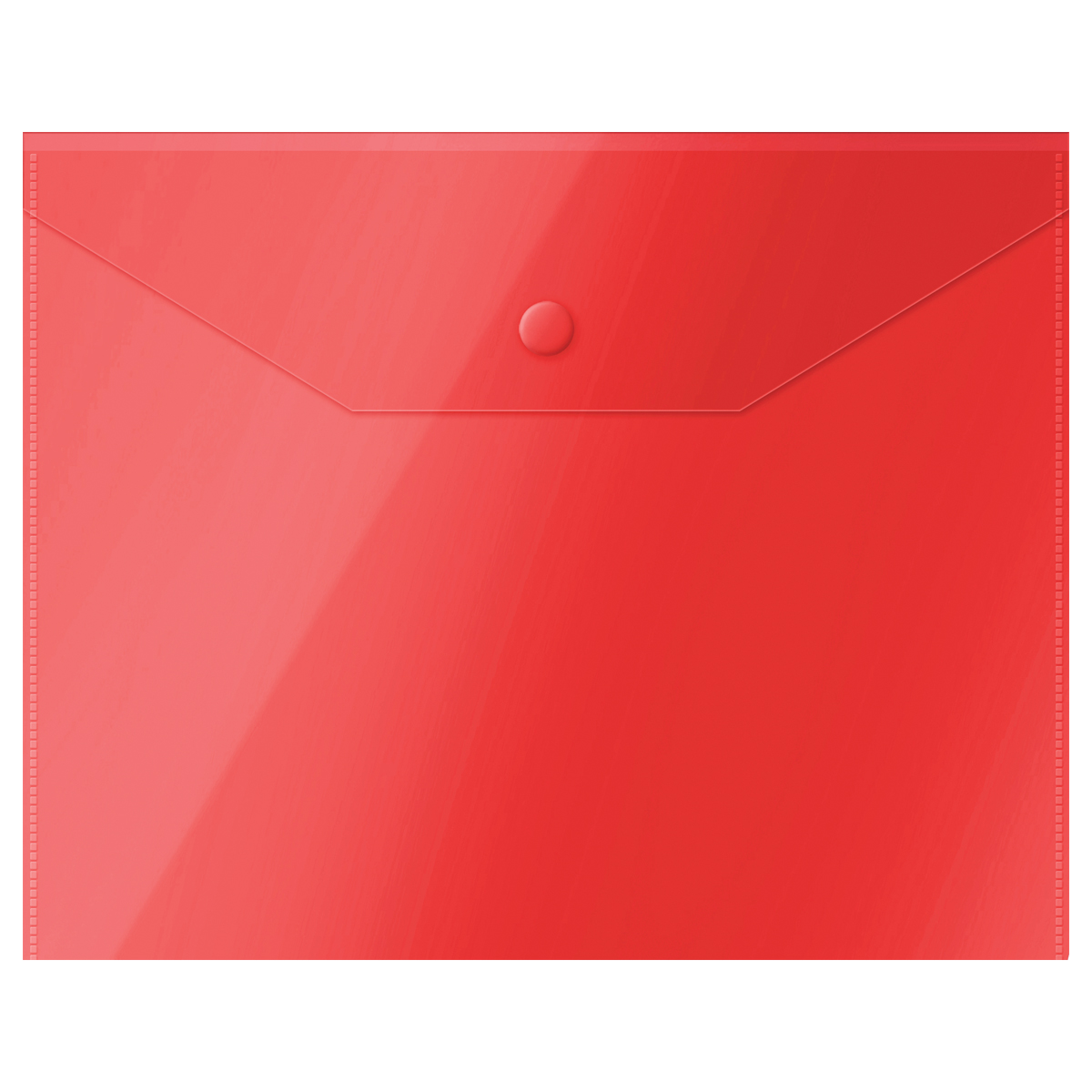 Папка-конверт на кнопке СТАММ А5 (190х240мм), 150мкм, пластик, прозрачная, КРАСНАЯ арт.ММ-31905