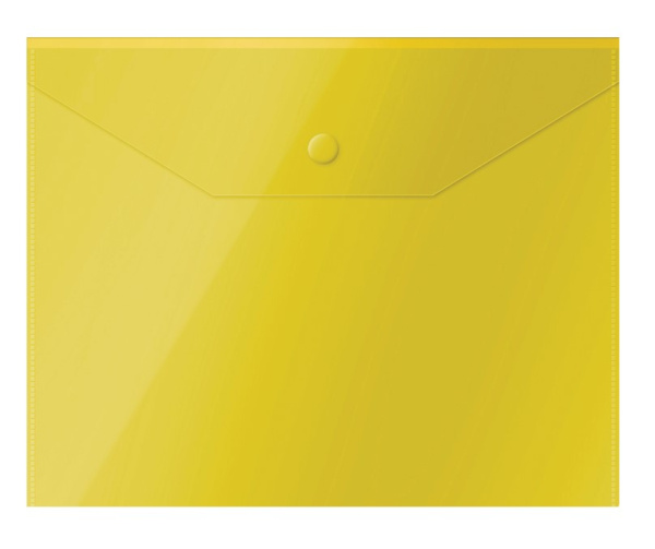 Папка-конверт на кнопке СТАММ А5 (190х240мм), 150мкм, пластик, прозрачная, ЖЕЛТАЯ арт.ММ-31903